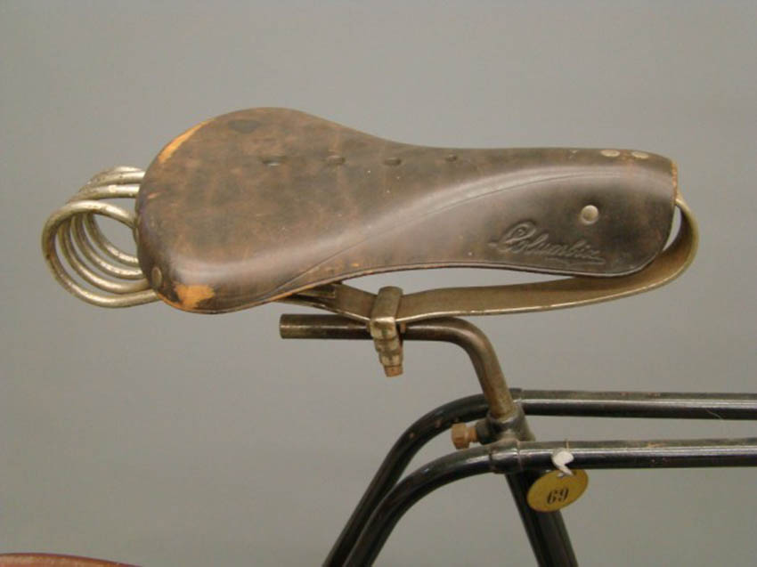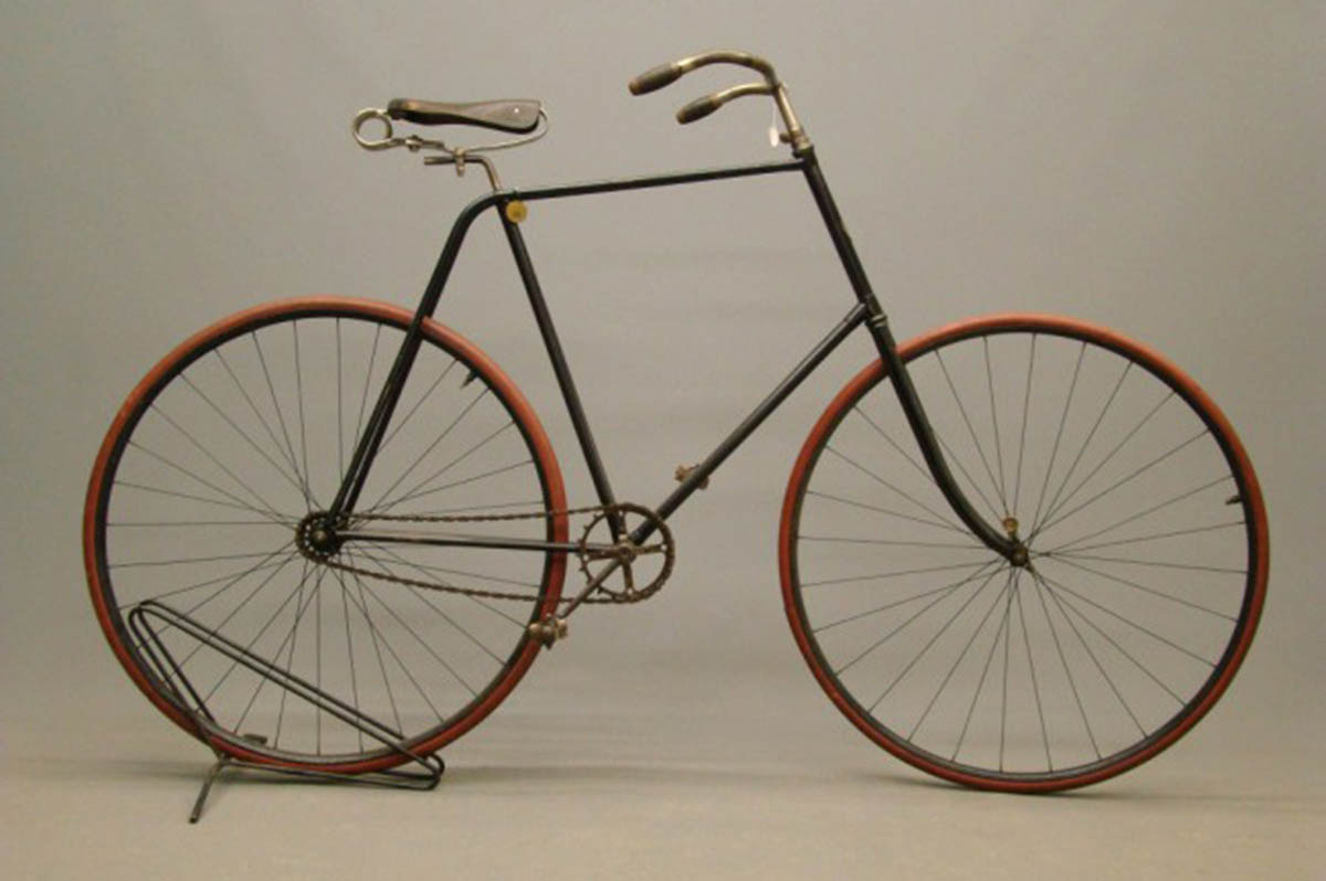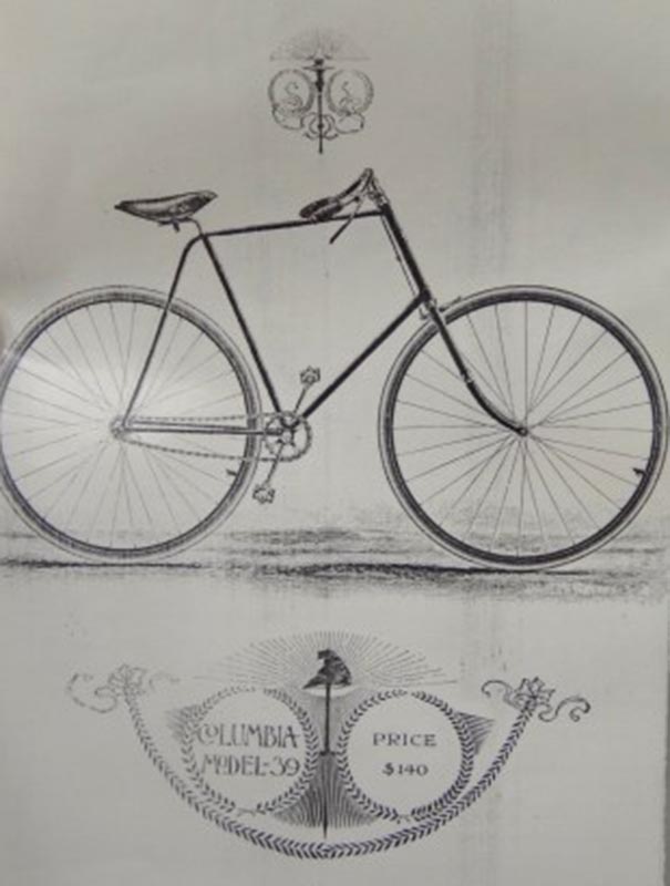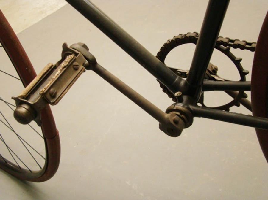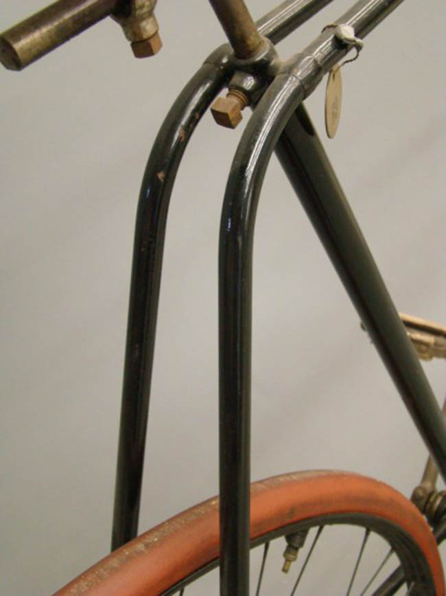 This Columbia model 39 is an extremely tall safety. In later years, 1896-1898, there was a short period when more factories built very high frames, but these bikes also had a high bracket. So: the bike had a tall frame, but it could be ridden by normal sized men.